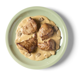 Meer info | Varkenshaasje met champignonroomsaus€ 15,99