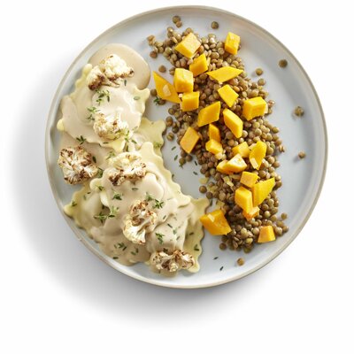 Snel en makkelijk genieten van een vegetarisch hoofdgerecht tijdens de feestdagen? Dat kan perfect! Wat denk je van dit gerechtje met boschampignons, linzen en butternut?