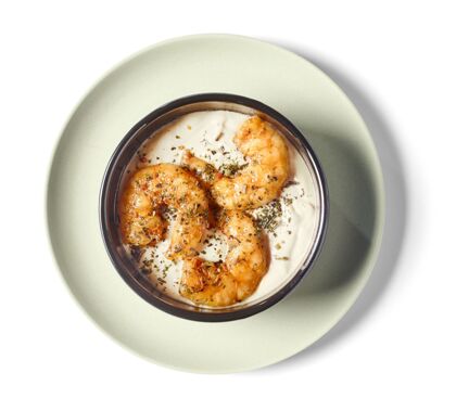 Scampi scoren altijd goed als feestelijk voorgerecht. Ook dit pannetje met looksaus valt vast in de smaak.