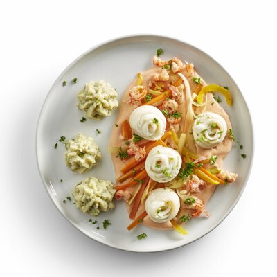 Het ideale gerecht voor wie houdt van vis en snel een zalige klassieker wil serveren. Lekker met preipuree, belle-auroresaus en groentjes.