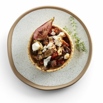 Zuiderse vibes op je feest? Serveer je gasten dit taartje van zuiderse groenten met geitenkaas, vijgen en rozijnen. Overheerlijk en helemaal veggie.