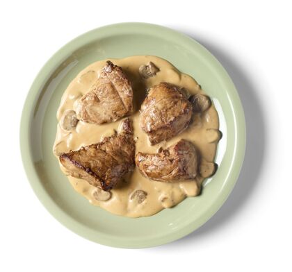 Een heerlijk hoofdgerecht met het fijnste stukje varkensvlees en een romig sausje met champignons.
