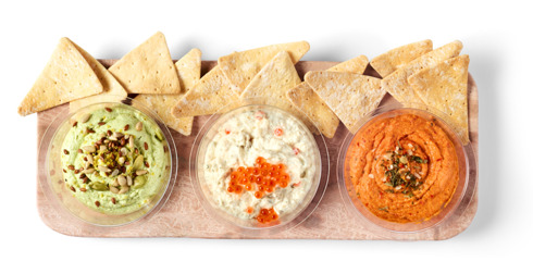 Assortiment van 3 dips met crackers