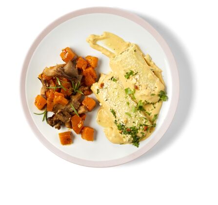 Geef je avond een Italiaanse toets met deze cannelloni gevuld met ricotta en spinazie. Overheerlijk met truffelsaus, pijnboompitten, butternut en gebakken champignons